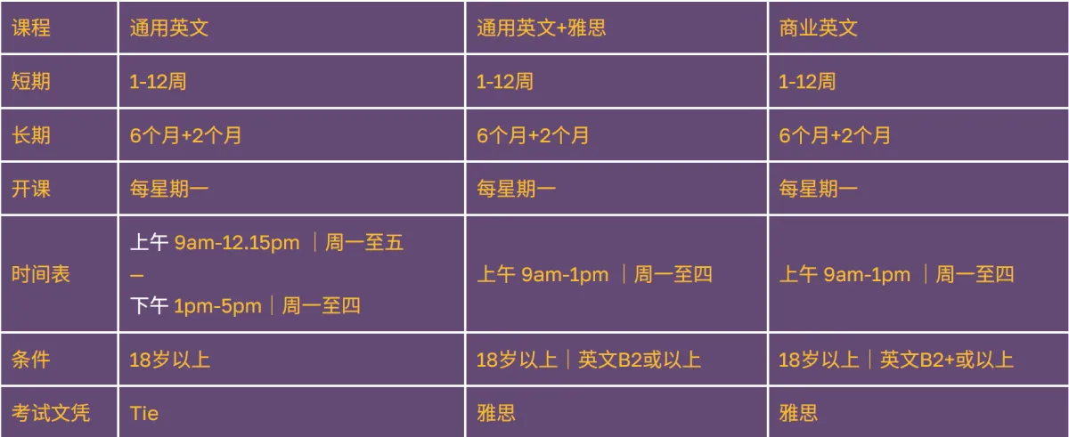 - 雅思班&商业英文4天上课制