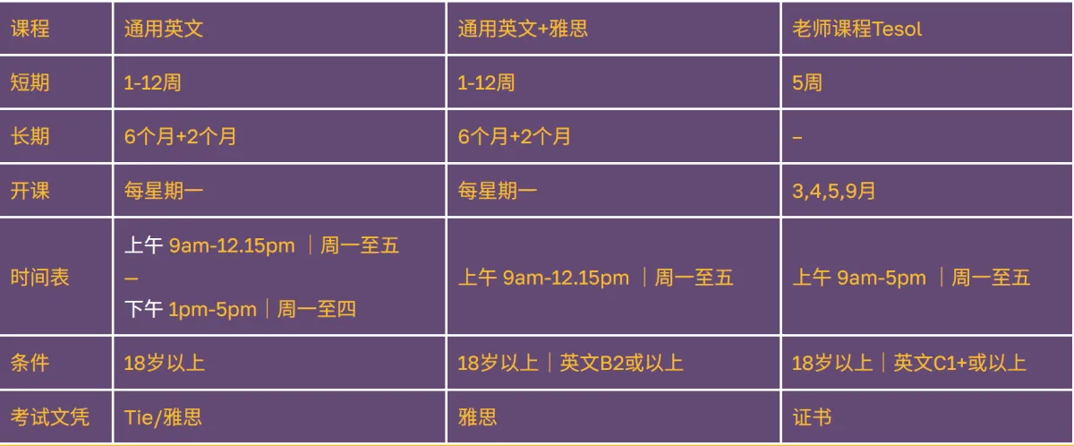 - 多元化课程(通用,雅思,老师课程,密集)